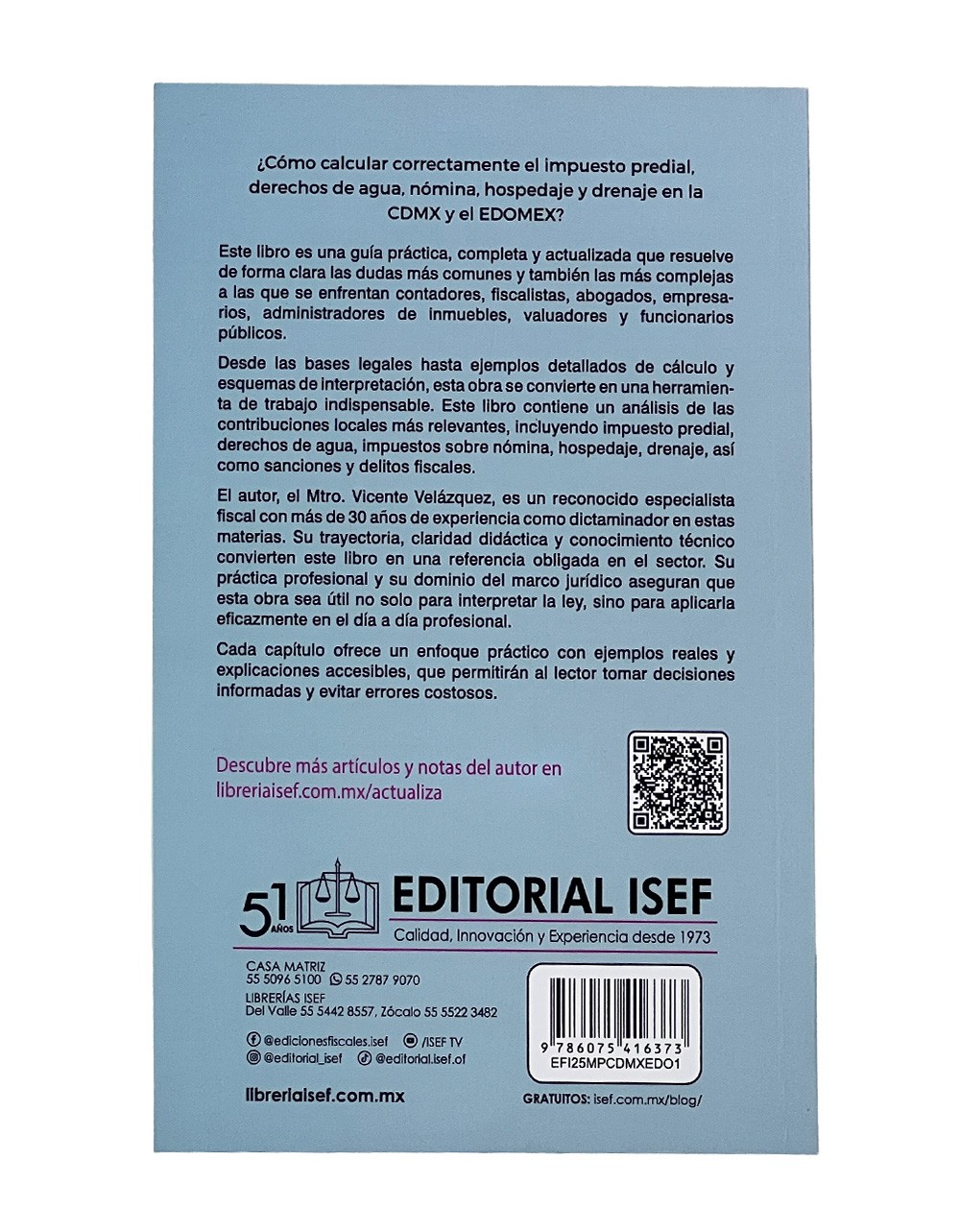 Este libro es una guía práctica, completa y actualizada que resuelve de forma clara las dudas más comunes y también las más complejas a las que se enfrentan contadores, fiscalistas, abogados, empresarios, administradores de inmuebles, valuadores y funcionarios públicos.