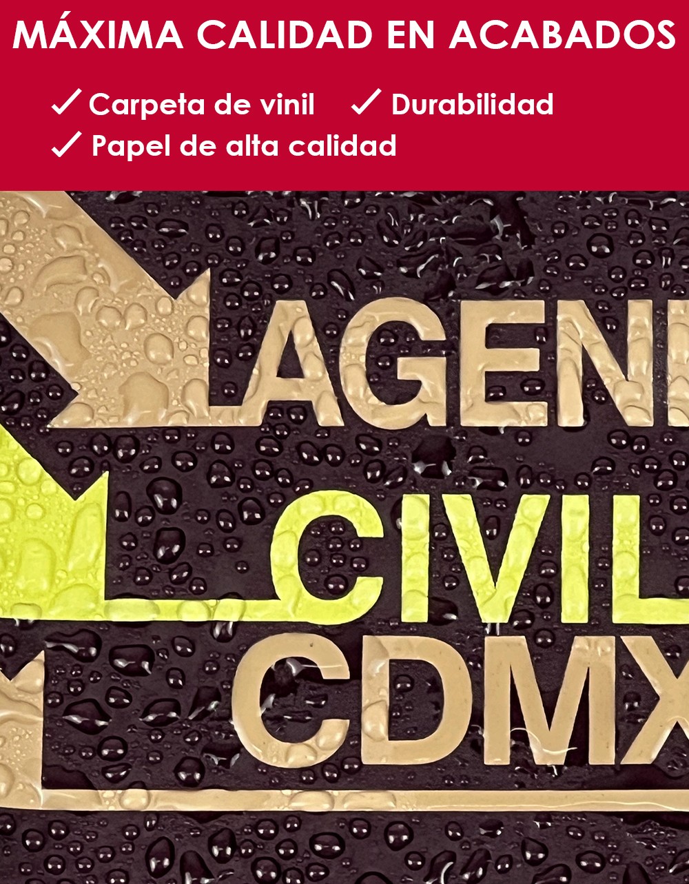 - Acabados de alta calidad: carpeta de vinil y papel especial para escribir y subrayar.