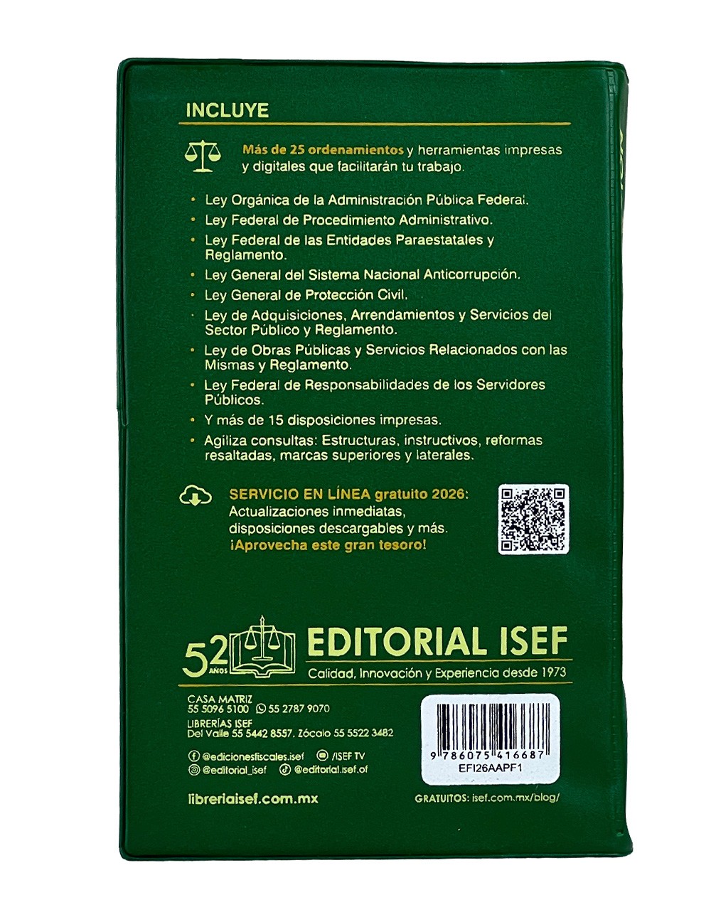 El más completo y portátil compendio de leyes, reglamentos y disposiciones de administración pública federal con más de 25 ordenamientos y herramientas impresas y en línea.
