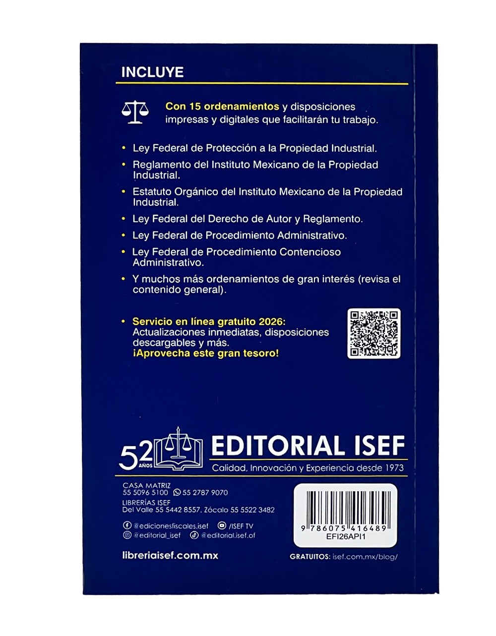 Contiene: Ley Federal de Protección a la Propiedad Industrial, Ley Federal del Derecho de Autor, Ley Federal de Procedimiento Administrativo, Convenio de Berna para la Protección de las Obras Literarias y Artísticas y Ley Federal de Procedimiento Contencioso Administrativo y 15 ordenamientos.