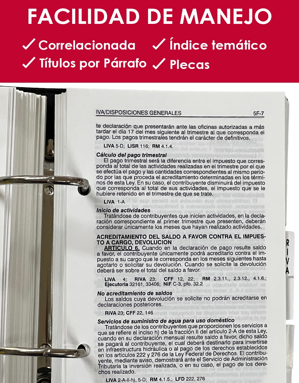 ✓ Facilidad de manejo: titulada por artículo y párrafo, con índice temático, estructuras, instructivos, reformas resaltadas, marcas superiores y separadores.